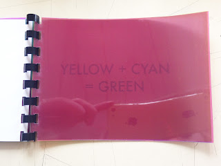 The overlapped acetate used to create the colours seen below, the only colours of acetate used are Magenta, Yellow and Cyan. This then uses subtractive colour system to create the colours seen as the mixture of acetate layer over lap in different orders.