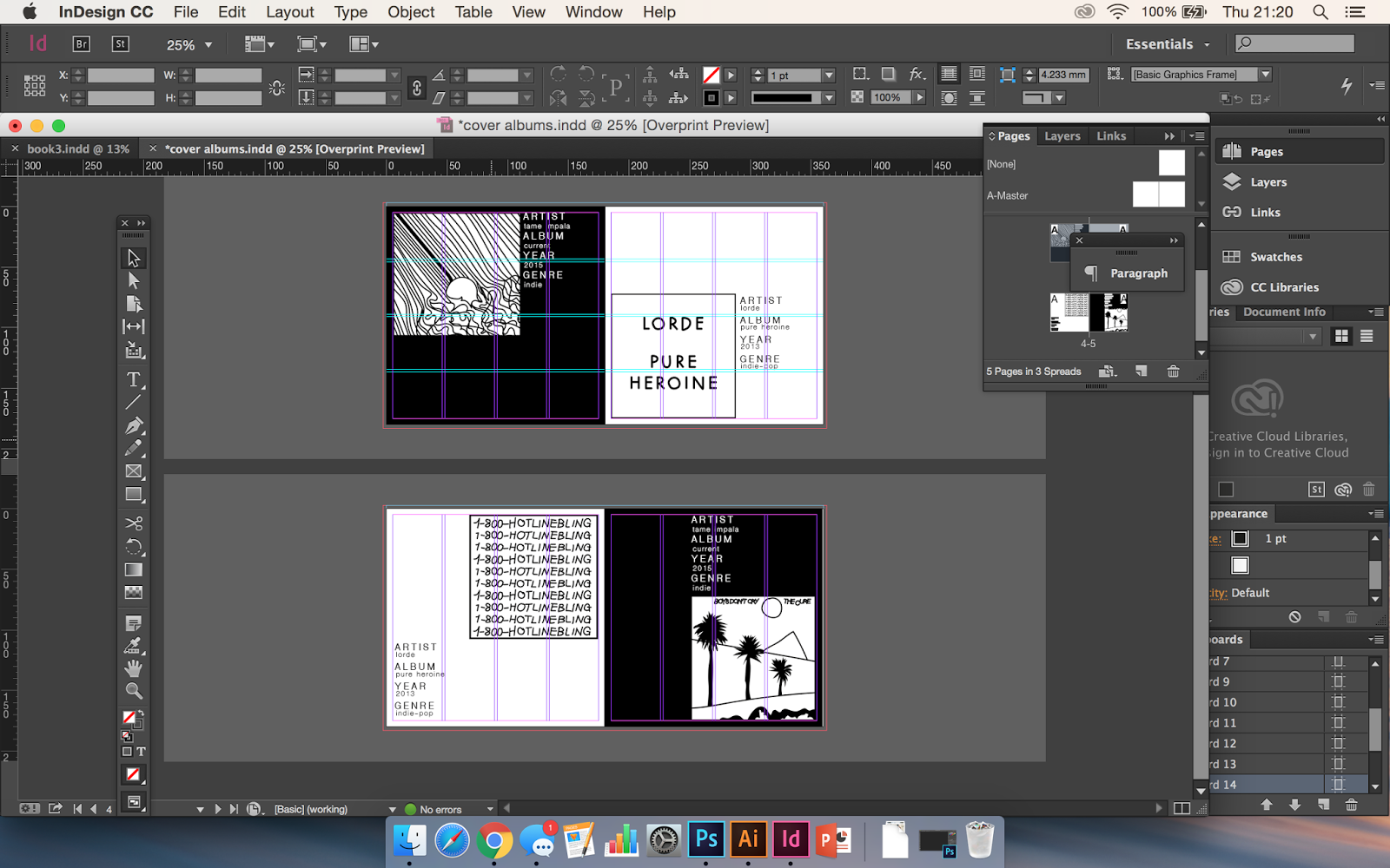 The sleeves have been redrawn in the same style and paired up so they will fit together as double page spread to make the book easily to read and to make the pages flow. Since all the imagery used in this book is ver different the aim of the layout is to make the book read easily, seem like a set of grouped imager, flow from one double page to another, have a consistent style/size of text, display the covers so they attract the most attention, use white space to make sure the book isn't too busy or over powering.